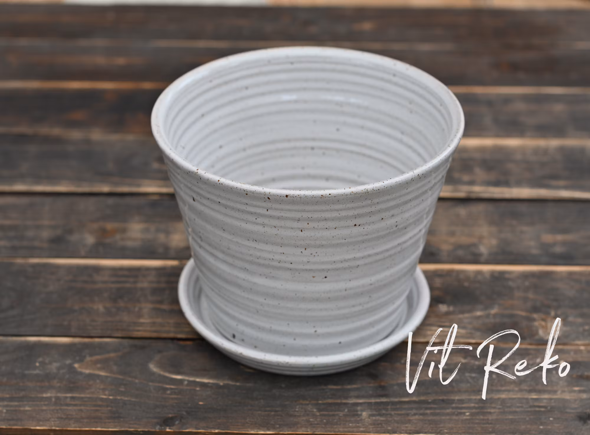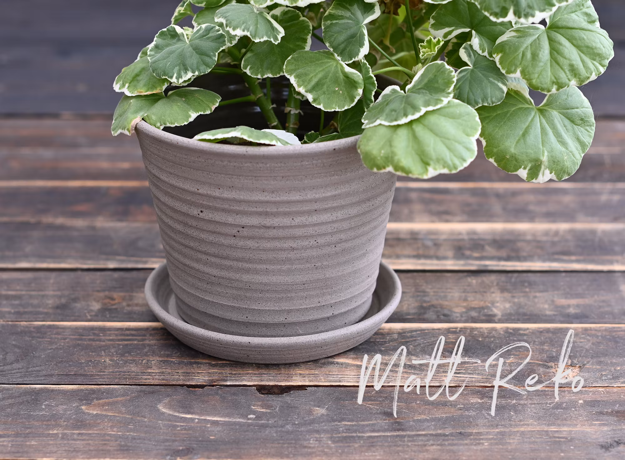 Den oglaserade varianten gör jag eftersom jag vill åt den där matta naturliga känslan. Den är bränd i hög stengodstemperatur så den drar inte åt sig något vatten. Det gör att den inte får någon fukt under krukan. Jag glaserar insidan eftersom de blir lättare att hålla rena.
