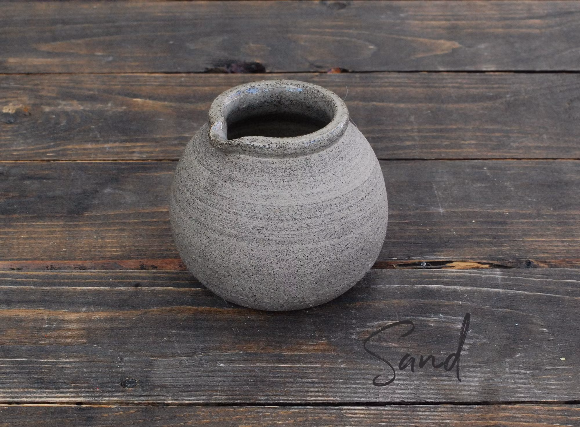 En liten drejad kanna i stengods till vinägretten, mjölken eller det skirade smöret. Eller varför inte ha den som en liten vas?