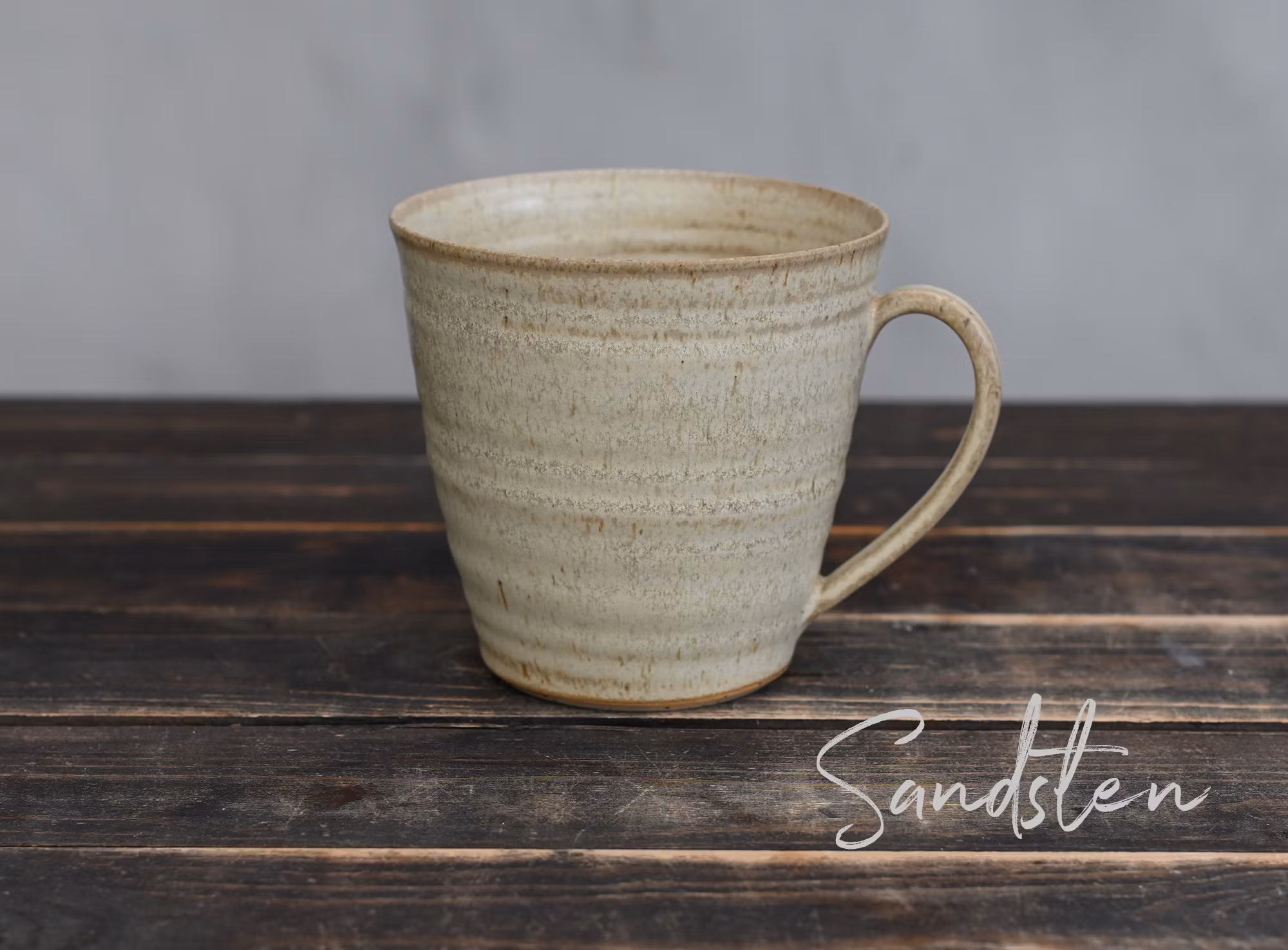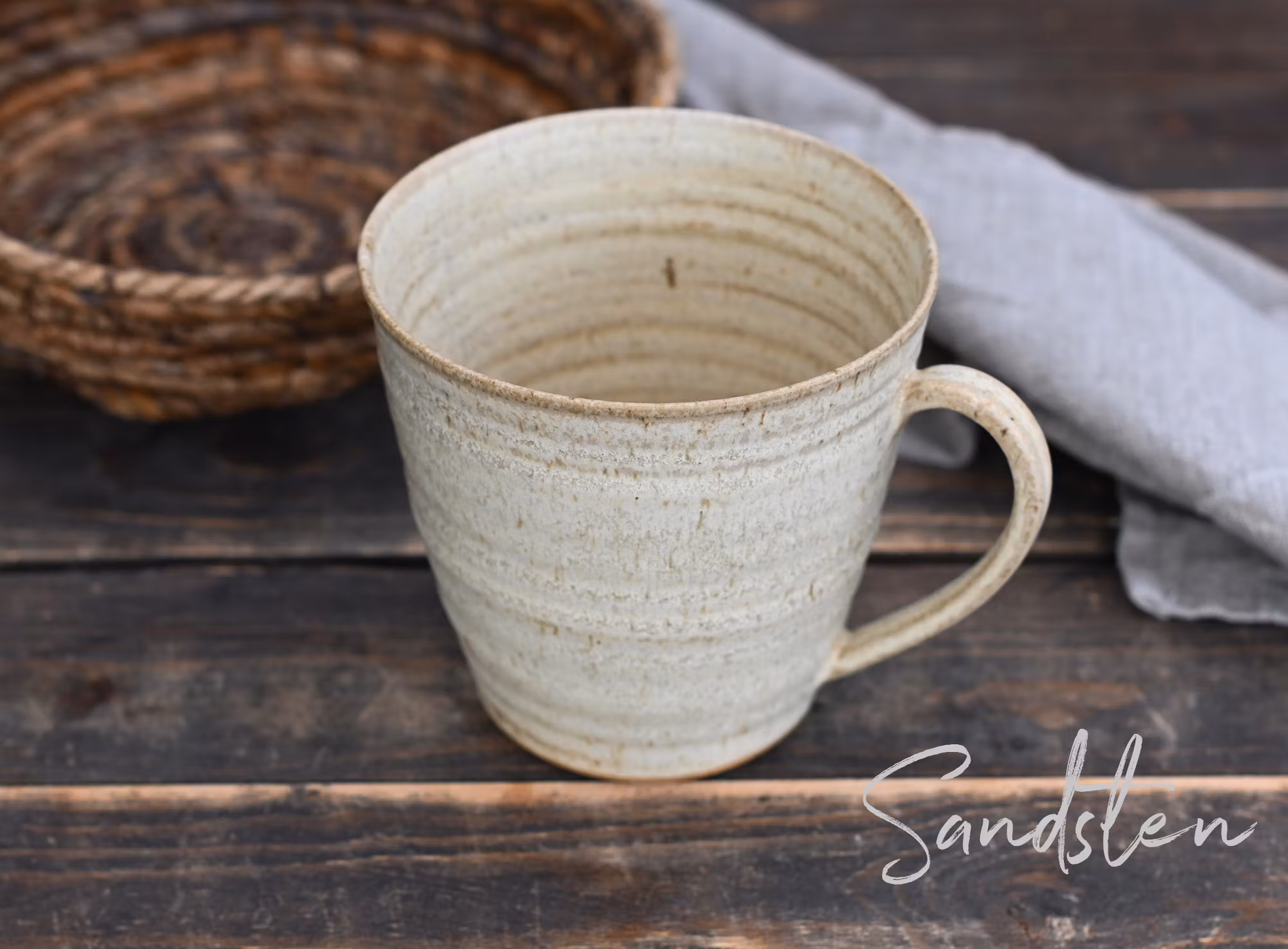 Tekoppen ska vara skön att hålla i. Stor så att man kan hålla den med båda händerna runt om. Med mjuka former och en glasyr som framhäver de drejade ränderna. Just den här genuina känslan finner du i min allra största tekopp eller temugg om man vill kalla den så.