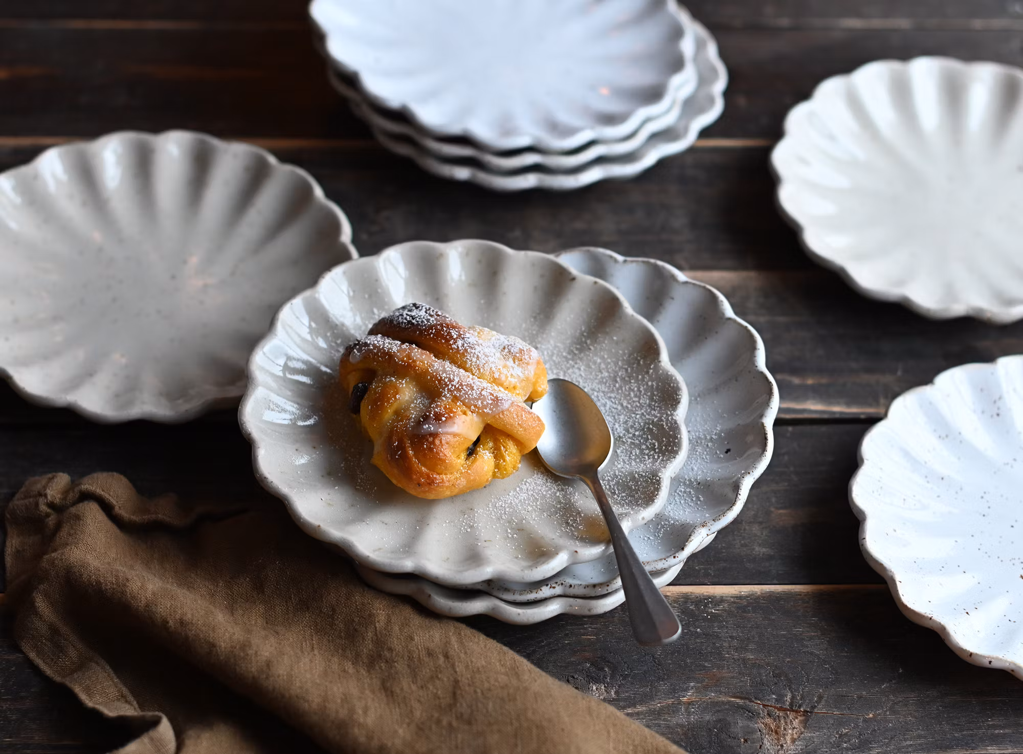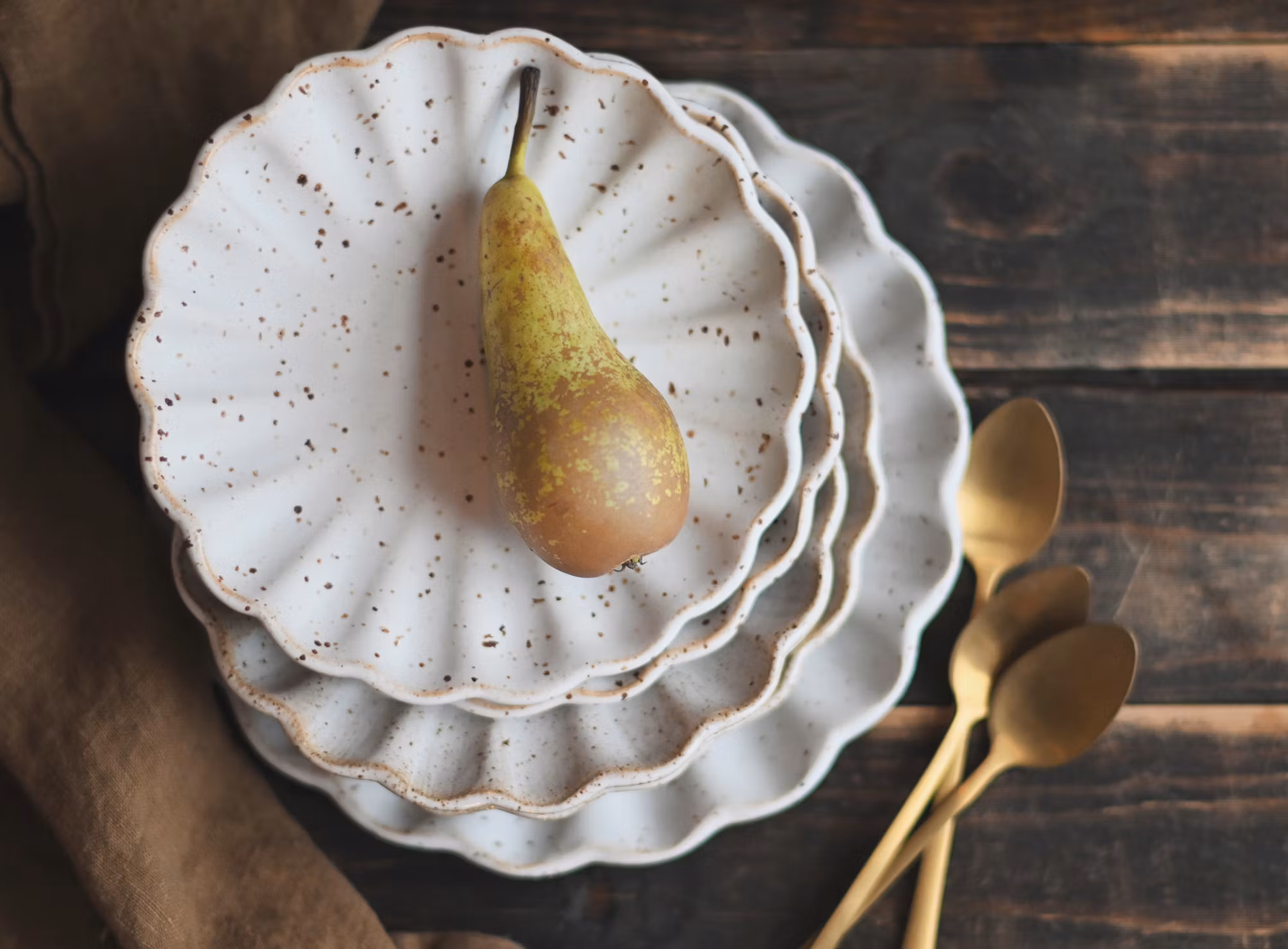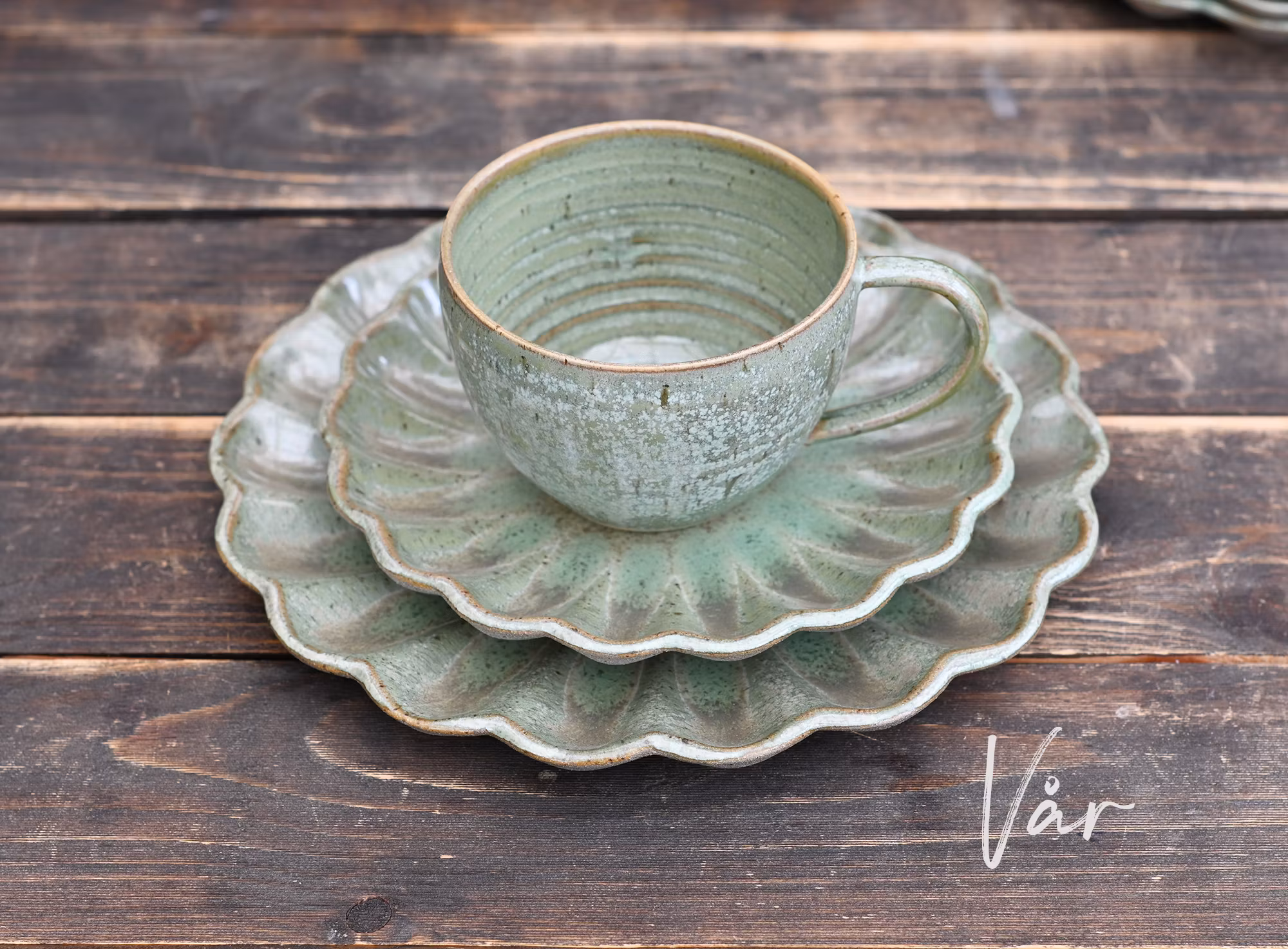 Set om 4 st assietter. Fatet är något skålat och passar utmärkt till en bit paj med vaniljsås, en smörgås eller som fat till tomaterna i fönstret.